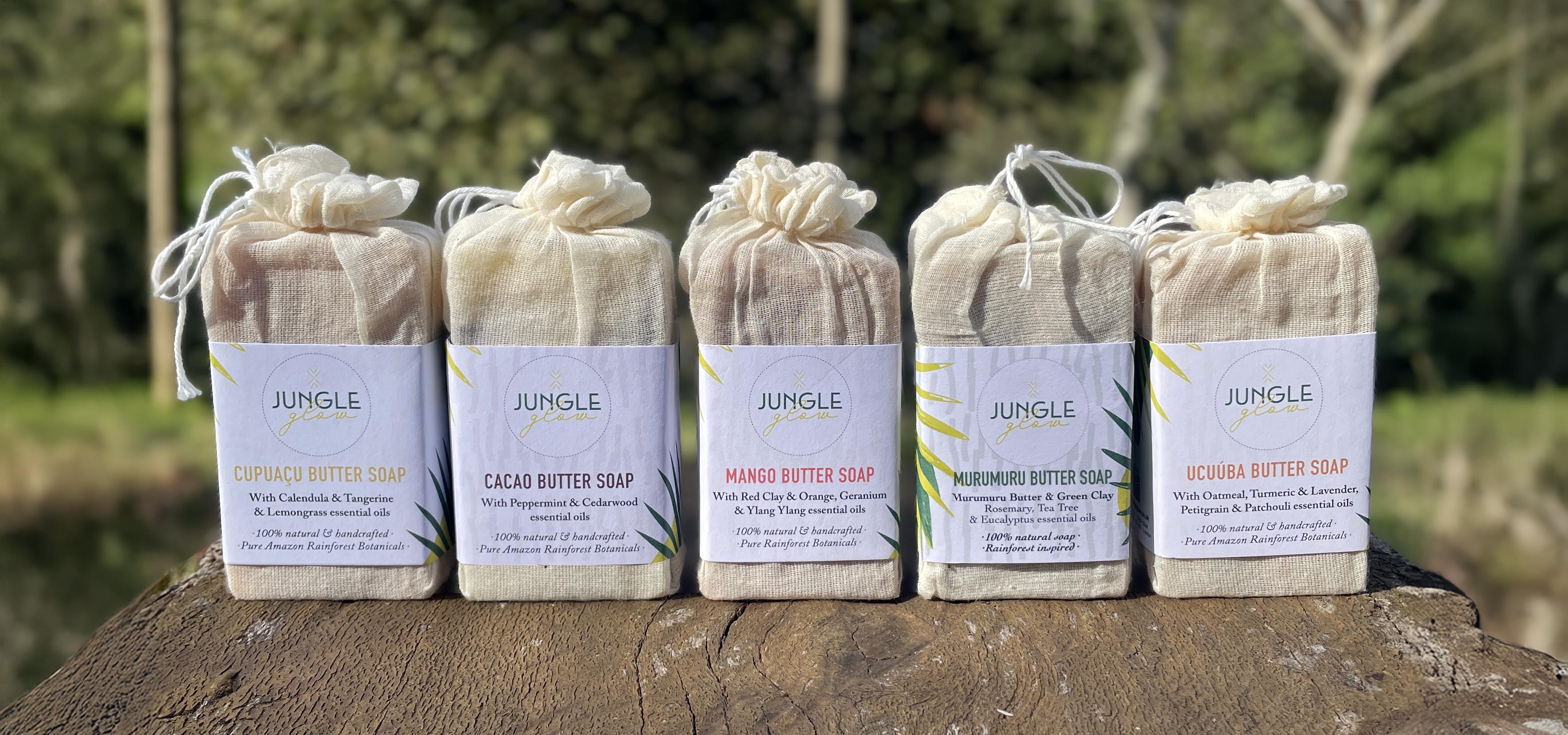 Jungle Glow soaps are 100% natural and hand-crafted in small batches using the finest plant oils to create a luxurious, skin-nourishing bar. Enriched with rich, protective Amazonian butters, each soap is infused with a unique blend of pure essential oils, herbs, and clays. Thoughtfully formulated, these one-of-a-kind bars offer a sensory experience that nurtures your skin while honouring the beauty of the rainforest.